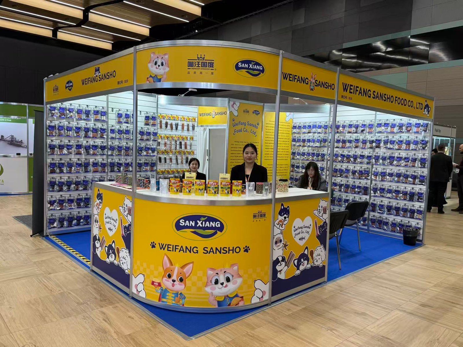 Weifang Sansho has several production lines, dog and cat dry staple food, dog and cat dry treats, dog and cat canned food etc.